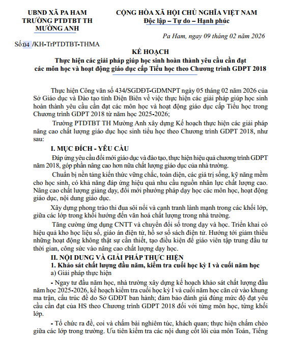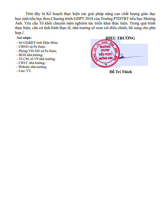 | Cơ quan ban hành | Trường PTDTBT tiểu học Mường Anh |