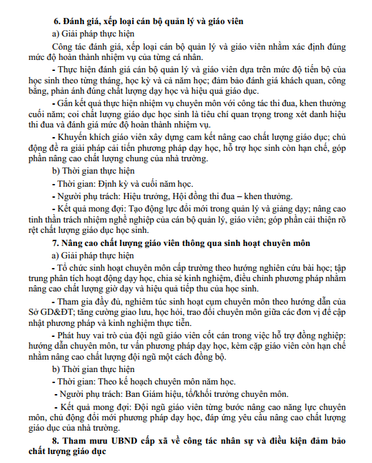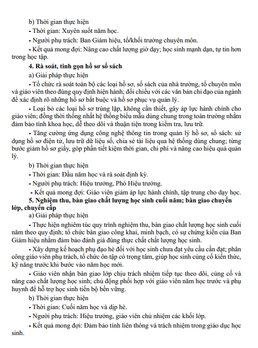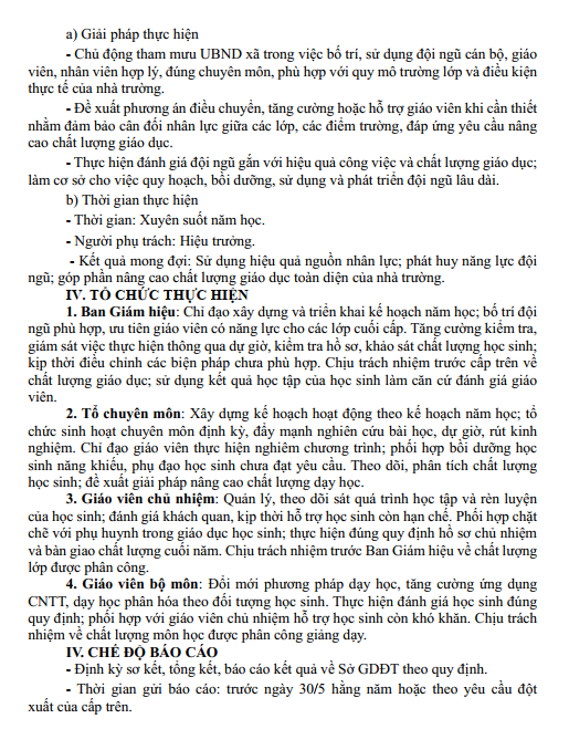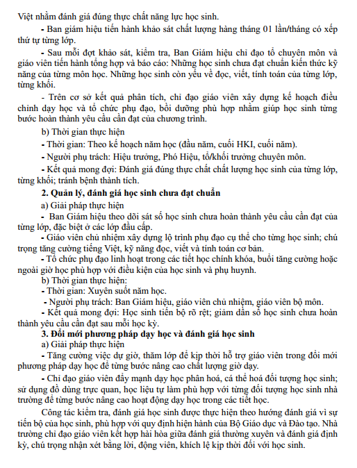 Kế hoạch thực hiện các giải pháp giúp học sinh hoàn thành yêu cầu cần đạt các môn học và hoạt động giáo dục cấp Tiểu học theo Chương trình GDPT 2018