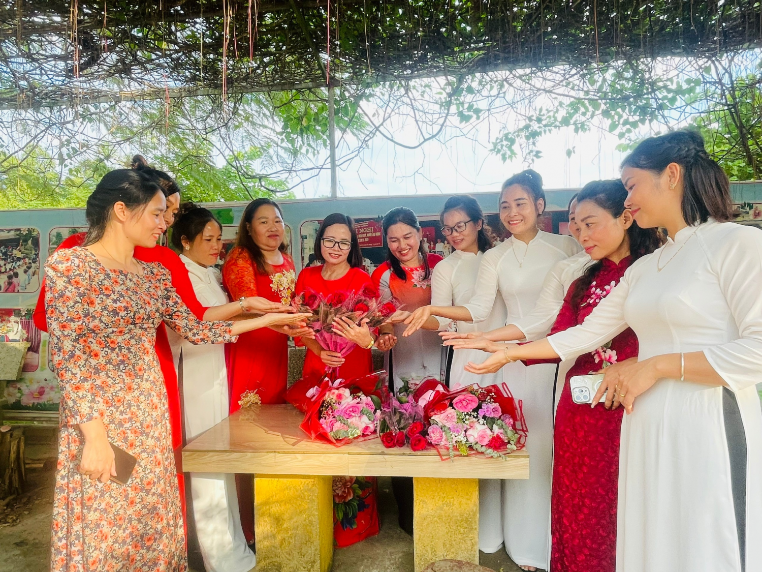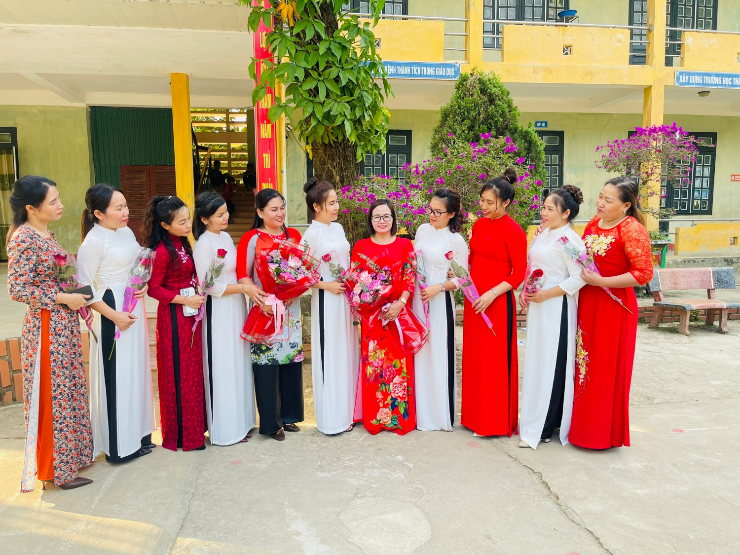 Đại diện Ban giám hiệu, cô Nguyễn Thị Nga – Phó hiệu trưởng nhà trường – đã gửi những lời chúc mừng tốt đẹp nhất cùng những bó hoa tươi thắm đến toàn thể nữ cán bộ, giáo viên, nhân viên của trường.